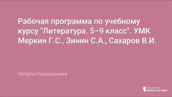 Представлена Рабочая программа по учебному курсу "Литература. 5–9 классы".