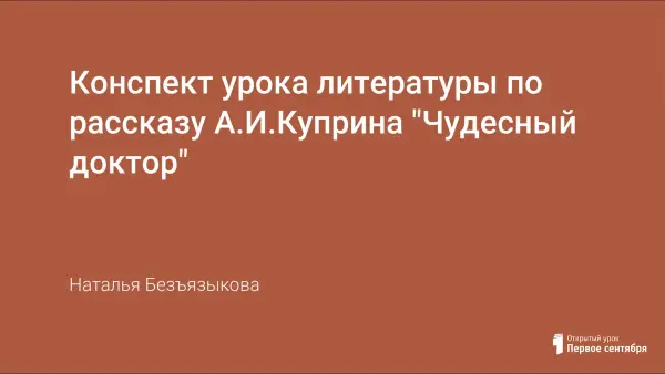 Цели урока: проанализировать рассказ А.И.Куприна «Чудесный доктор»; определить смысл названия рассказа, познакомиться с реальной основой произведения; в процессе обсуждения содержания рассказа выявить, что такое сострадание, милосердие, и кто из героев обладает этими качествами; формировать навык обучающихся работать с текстом, выделяя ключевые понятия и выявляя их основные признаки.