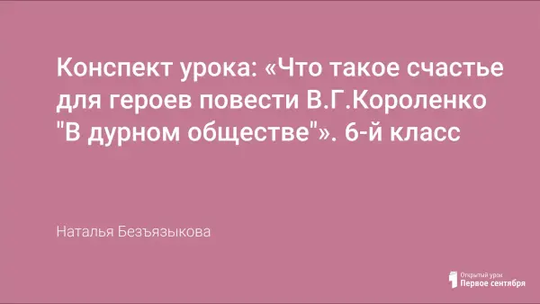 Цель урока: воспитание личности, формирование ценностного и гуманного отношения к семье, дому, окружающим (в процессе анализа произведения В.Г.Короленко).