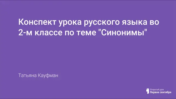 Урок русского языка во 2-м классе по программе "Начальная школа XXI века" под руководством Н.Ф. Виноградовой. Урок изучения нового материала из блока "КУНЯ". Задачи — познакомить с понятием "синонимы", наблюдать за сходством и различием слов-синонимов, развивать навыки речи учащихся, формировать навыки работы в парах и группах. Урок апробирован, получил высокую оценку у коллег, присутствующих на уроке.