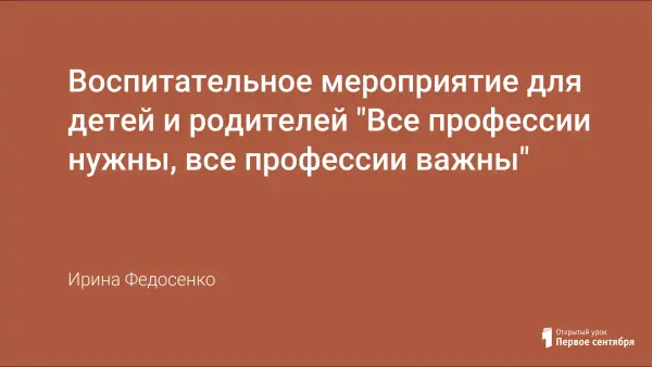 Мероприятие является традиционной "Встречей с интересными людьми" (в рамках образовательной программы "Из детства - в отрочество"), к которому активно привлекаются родители. Мероприятие способствует формированию у детей понятия "трудовой деятельности взрослых", умению общаться с людьми.