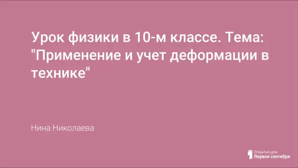 На уроке рассматриваются виды деформации и необходимость учета деформации в строительстве, машиностроении и в других отраслях науки и техники. Показать связь изучаемого материала с реальной жизнью.