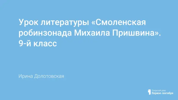 Есть в русской литературе писатели, открыть которых для себя можно в любом возрасте – в детстве, юности, будучи зрелым человеком. Один из таких художников – М.М. Пришвин. Много прекрасных мгновений запечатлено в слове на страницах его книг. Среди них особое место занимает произведение «Школьная робинзонада». Часть биографии писателя связана со Смоленским краем.