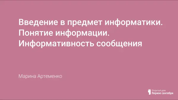 Введение в предмет информатики. Понятие информации. Информативность сообщения. Знакомство учеников с компьютерным классом (ИТБ). Урок разработан с использованием ТСО. Для проведения мультимедийного урока возможно использование интерактивной доски, (при фронтальном выполнении упр. 1 и 2). Необходимое программное обеспечение MS POWER POINT, MS WORD или MS EXSEL. MS POWER POINT – для наглядного сопровождение лекции, смена слайдов – с помощью мыши. MS WORD или MS EXSEL для самостоятельного выполнения упр. 1.