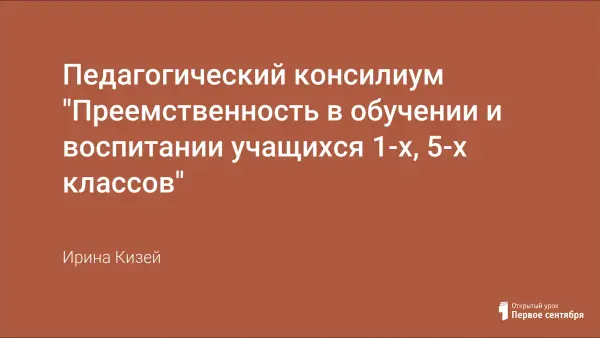 Вопрос о преемственности обучения не является новым. Однако, несмотря на многочисленные обсуждения этой проблемы, практика её решения пока далека от теории. Предлагаемый педагогический консилиум рассматривает вопросы, которые помогут облегчить переход детей с одной ступени обучения на другую; создать благоприятный микроклимат для дальнейшего обучения; установить нормальные взаимоотношения, творческое сотрудничество учителей начальных классов и предметников.