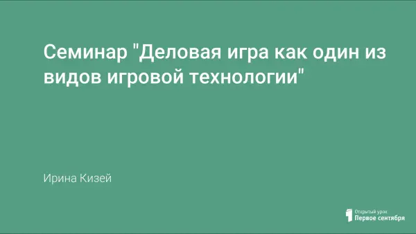 Семинар рассматривает развивающие возможности деловой игры, алгоритм «встраивания» в процесс образовательного взаимодействия с целью его совершенствования. Рассматриваются виды и формы проведения деловых игр, которые способствуют развитию интереса учащихся к изучаемому материалу.