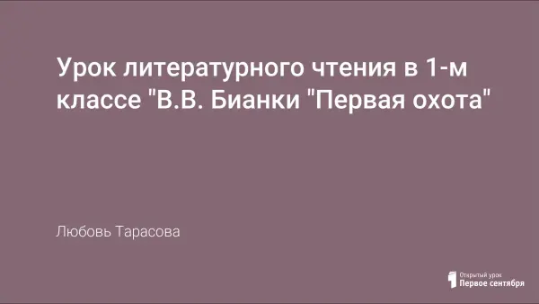 В статье представлена разработка урока литературного чтения в 1-м классе по произведению В.В. Бианки ''Первая охота''. УМК ''Гармония''. Учащиеся знакомятся с творчеством В.В. Бианки, учатся оценивать поступки героев, высказывать свою точку зрения.