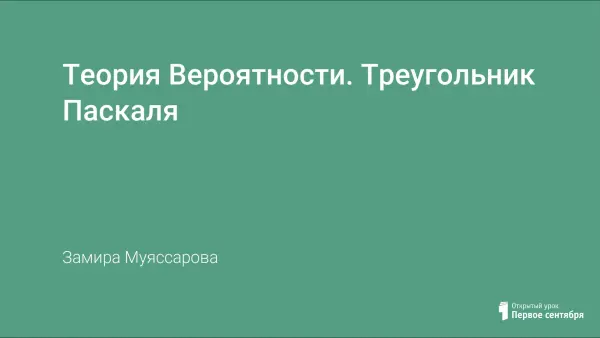 Представлена презентация по теме "Теория Вероятности. Треугольник Паскаля".