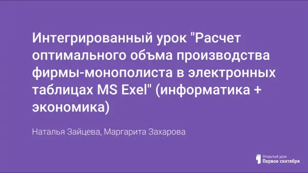 Интегрированный урок "Расчет оптимального объма производства фирмы-монополиста в электронных таблицах MS Exel" (информатика + экономика)