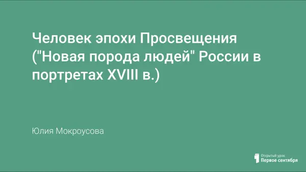 Эпоха Просвещения в России - это время активного проникновения в русскую жизнь элементов светской культуры. На уроке дети знакомятся с выдающимися русскими художниками и видными деятелями общественной мысли и науки XVIII века, прослеживают развитие портретного жанра в России с конца XVII до конца XVIII веков, учатся выделять характерные черты, составлять портрет Человека эпохи Просвещения.
