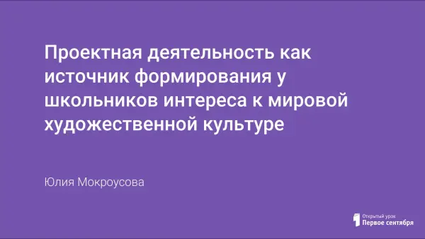Проектная деятельность по мировой художественной культуре является средством активизации познавательного интереса и расширения кругозора учащихся. Метод проектов ориентирован на исследовательскую деятельность учащихся. Его применение предполагает конструктивное влияние на социализацию личности, развитие самостоятельности в принятии решений; критический анализ информации. Метод проектов позволяет организовать самостоятельную творческую деятельность учащихся и интегрировать учебную и самостоятельную поисковую внеурочную деятельность. Работая над проектом, школьники учатся более критично оценивать ценности текущего времени.
