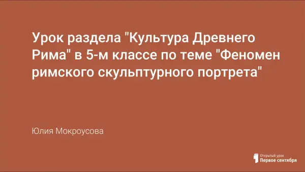 Автор статьи знакомит учащихся с отличительными особенностями римской скульптуры, с историей возникновения римского скульптурного портрета и особенностями портретных изображений. Воспитывает критическое отношение к личным качествам изображаемых персонажей. Развивает навыки первичного анализа произведений скульптуры на основе изобразительных особенностей данного вида искусства.