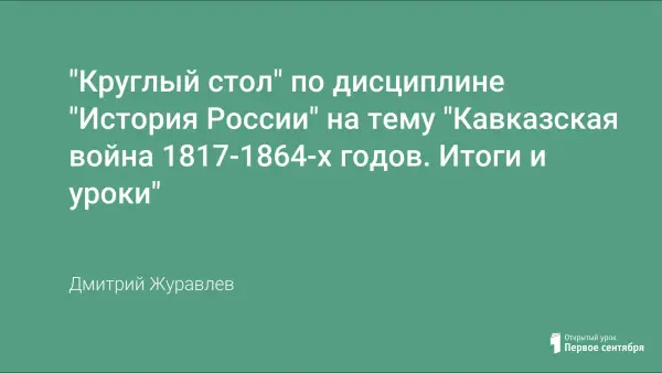 В предлагаемом "круглом столе" рассматриваются различные точки зрения. Рассматривая Кавказскую войну как историческое явление, ее сущность, причины, ученики выясняют, возможно ли было избежать подобных трагических событий, стараются ответить на вопрос - нужны ли нам, живущим в XXI веке, знания о событиях той далекой эпохи и если нужны, то зачем?