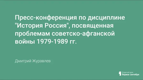 Урок посвящен изучению войны в Афганистане. Урок в форме пресс-конференции позволяет как осмыслить уже знакомый материал, так и подумать о возможных вариантах развития событий.