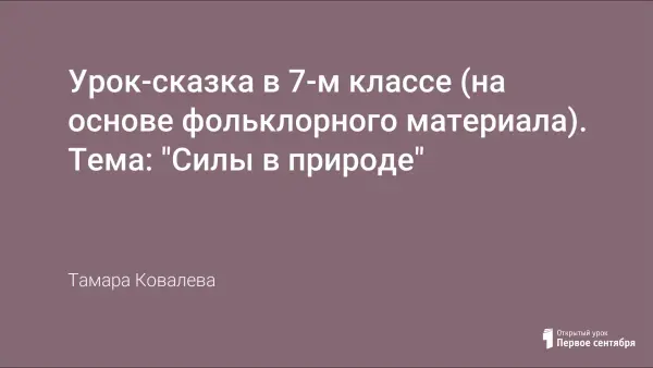 Урок является обобщающим при повторении темы о физических силах в 7-м классе. Увлекательная подготовительная работа позволяет узнать детям много нового, интересного исторического и фольклорного материала, представить его в рисунках, сценках, стихотворениях. Знания о силах помогут увидеть в пословицах, поговорках, сказках физическую суть, объяснить действие игрушек с физической точки зрения.