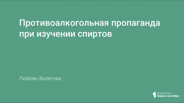 Используя мультимедийное учебное пособие, рассказ, беседу, видеофильм, автор статьи разъясняет разрушительное действие спиртов (метанола, этанола и др.) на организм человека, центральную нервную систему, рождение неполноценных детей.