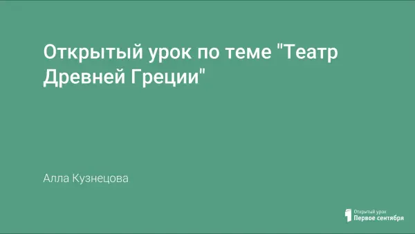 Урок является итоговым в изучении темы «Театр Древней Греции». Проводится в форме интеллектуально-театрализованной игры, состоящей из 3-х туров: теоретической разминки; игры «Пойми меня»; домашнего задания, состоящего из театрализованной постановки истории из жизни Диониса с использованием реквизита и костюмов, изготовленных самостоятельно.