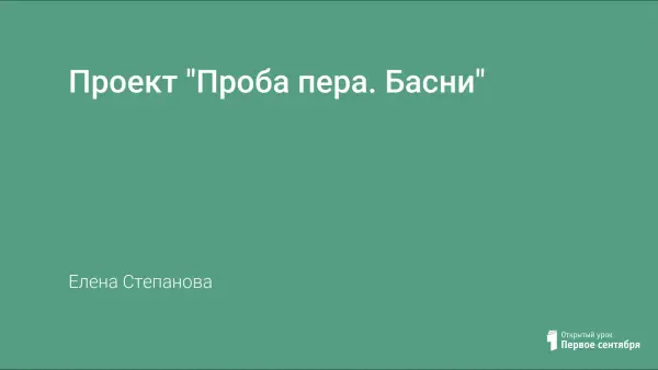 Представлен конспект проекта "Проба пера. Басни". Цели проекта - повысить интерес учащихся к чтению, расширить кругозор; получение навыка исследовательской работы, развитие умения работать с различными источниками информации; развитие речи, коммуникативных способностей, создание условий для самореализации каждого ученика, повышение самооценки, обогащение словаря; развитие поэтического слуха, воспитание художественного вкуса, развитие способности полноценно воспринимать художественное произведение.