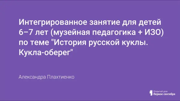 Музейная педагогика – важная составляющая дошкольного образования и воспитания в ДОУ. Занятие знакомит детей старшего дошкольного возраста с историей русской куклы-оберега. Дети узнают о назначении куклы, учатся самостоятельно ее мастерить.
