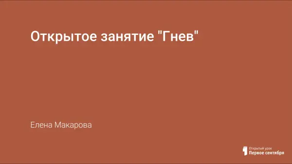 Занятие с первоклассниками направлено на ознакомление детей с эмоцией гнева и способами его преодоления. Оно проходит в игровой форме, включает различные упражнения: снятие эмоционального напряжения, выработка положительного настроя на занятие, развитие образного мышления, чувства взаимопомощи. Занятие способствует раннему развитию эмоциональной сферы детей и профилактике эмоциональных расстройств.