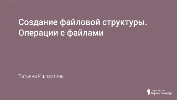 Урок посвящен формированию у учеников навыков создания папок и файлов, знакомству с операциями над файлами и папками. В ходе урока учащиеся выполняют практическую работу на компьютере в операционной системе Windows. Урок сопровождается компьютерной презентацией в среде Microsoft Power Point.