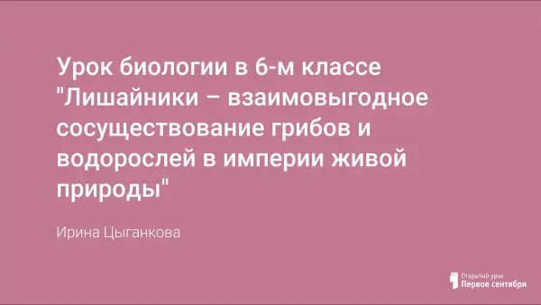 Урок биологии в 6-м классе по теме «Лишайники - взаимовыгодное сосуществование грибов и водорослей в империи живой природы» помогает учащимся уяснить особенности анатомо-морфологического строения лишайников, видового многообразия, разобраться в характере взаимоотношений компонентов лишайников и получить представление об их значении в природе и жизни человека.
