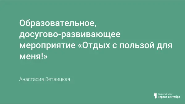 Образовательное, досугово-развивающее мероприятие «Отдых с пользой для меня!»