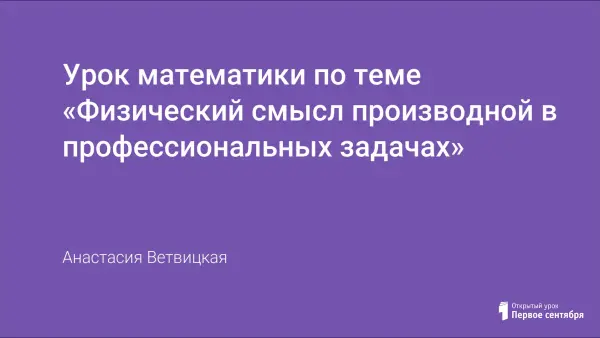 Урок математики по теме «Физический смысл производной в профессиональных задачах»