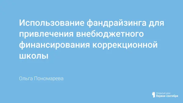 Для привлечения внебюджетного финансирования в коррекционную школу используется технология фандрайзинга. Наиболее эффективная форма - адресная рассылка писем-обращений. Постоянное приглашение спонсоров к сотрудничеству – признак динамично развивающегося образовательного учреждения. Важно научиться чувствовать себя партнером, а не просителем.