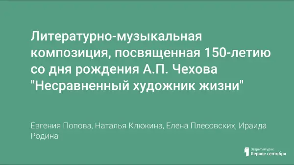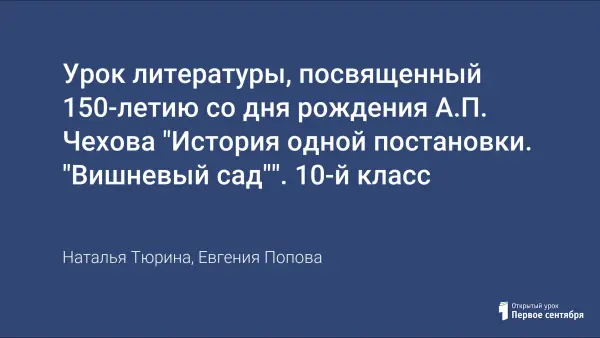 Открытый урок-экскурсия, посвященный 150-летию со дня рождения А.П. Чехова пробуждает у учащихся интерес к творчеству русского драматурга. Изучается роль писателя в создании «нового» театра; рассматривается история создания пьесы «Вишневый сад».