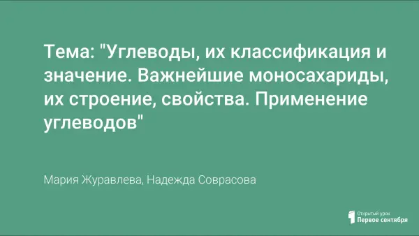 Тема: "Углеводы, их классификация и значение. Важнейшие моносахариды, их строение, свойства. Применение углеводов"