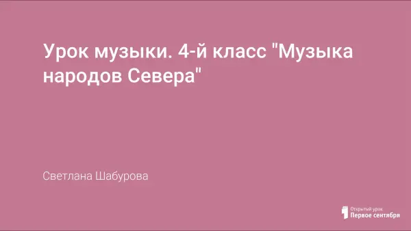 Урок музыки в 4-м классе знакомит учащихся с народной и композиторской музыкой Севера и народными инструментами ханты и манси. Тип урока - комбинированный. Форма - урок-путешествие.