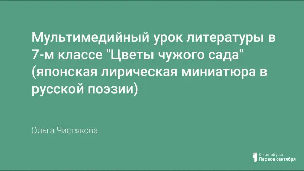Цель представленного урока – постараться понять, почему европейцев всегда привлекала японская культура, философия и найти главные отличительные черты японской поэзии от русской. Выбранная система вопросов и заданий постепенно и ненавязчиво подводит учеников к логичным выводам. В ходе урока использованы переводы и произведения русских поэтов.