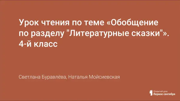 Урок чтения по теме «Обобщение по разделу "Литературные сказки"». 4-й класс