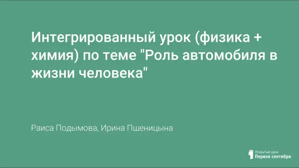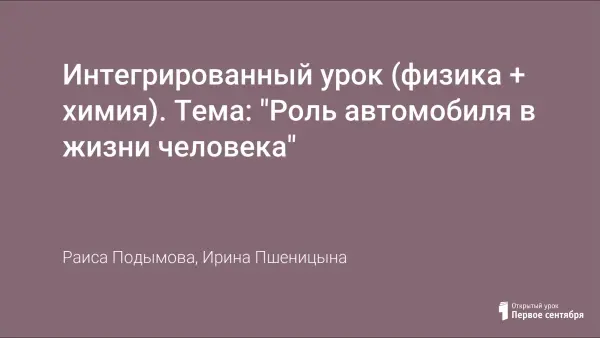 Интегрированный урок (физика + химия). Тема: "Роль автомобиля в жизни человека"
