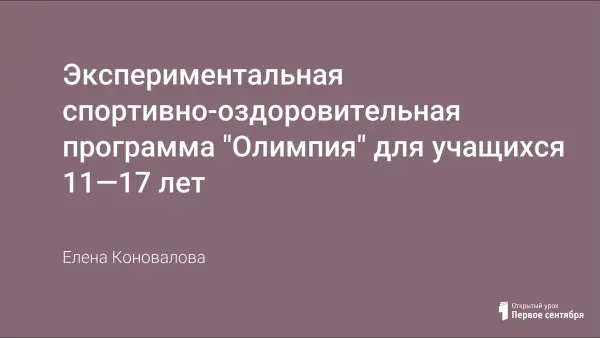 Спортивно-оздоровительная программа "Олимпия" направлена на снятие напряжения, психической усталости, развития гиподинамии и гипокинезии при чрезмерных умственных нагрузках учащихся профильных классов. Цель программы — физическое развитие ребенка с учетом его индивидуальных возможностей на уроках физической культуры и внеклассных мероприятиях.