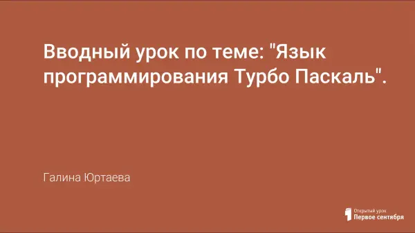 Вводное занятие по теме "Яязык Pascal, алфавит языка, структура программы, операторы присваивания и ввода-вывода, правила работы в среде Turbo Pascal 7.0, первая программа". Практическая работа с готовой программой, вычисляющей произведение двух целых чисел.