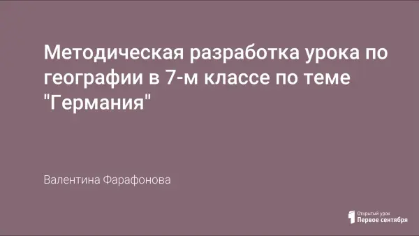 Урок-лекция с элементами заочного путешествия по теме "Германия" в 7-м классе. Опережающее задание как способ творческого развития познавательных способностей.
