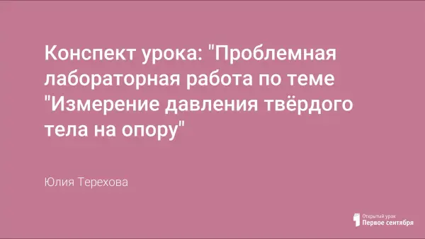 Обычно экспериментальная работа учеников проводится по общей инструкции целью закрепить пройденный материал. С целью развития детей считаю целесообразным проведение этой лабораторной работы, используя технологию проблемного обучения. Основная цель урока: научить учащихся различным способам измерения давления твёрдого тела на опору.