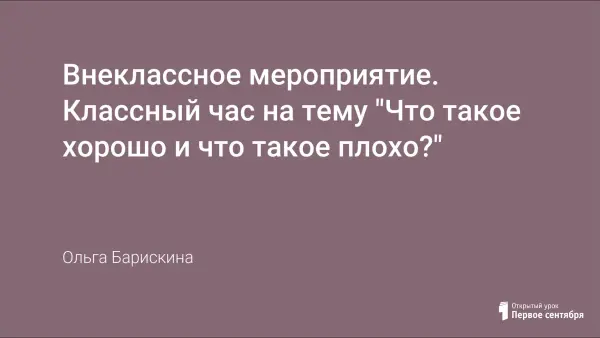 Во время внеклассного мероприятия ученикам даётся понятия, что все поступки людей можно разделить на хорошие и плохие. Первоклассники понимают, что испытывают окружающие тебя люди, когда ты совершаешь хорошие поступки. И как ты сам чувствуешь себя, когда поступаешь плохо.