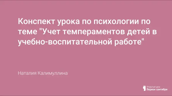 Цель данного урока: научить студентов педагогического колледжа в процессе самостоятельной мыслительной деятельности и выполнения практических заданий определять и учитывать индивидуальные особенности темперамента детей в учебно-воспитательной работе. Теоретические знания позволят студентам на педагогической практике и будущей педагогической деятельности провести диагностику типа ВНД младшего школьника, проанализировать полученные результаты и составить рекомендации по учету типа темперамента в учебно-воспитательной работе.