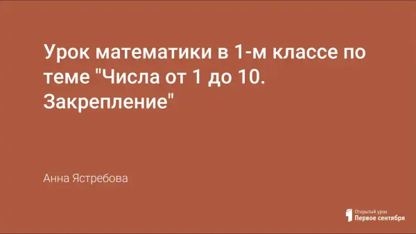 Урок математики в 1-м классе является обобщающим в теме "Числа от 1 до 10" по традиционной программе (1–4). Сюжетная линия урока – игра "Что? Где? Когда?", где команда соперников - герои сказок. Становясь участниками событий, дети с разным уровнем развития игровой и учебной деятельности активно включаются в работу, способны сконцентрироваться на ней длительное время, с интересом закрепляют знания, проявляют творческую инициативу, развивают собственную мотивацию к учению.