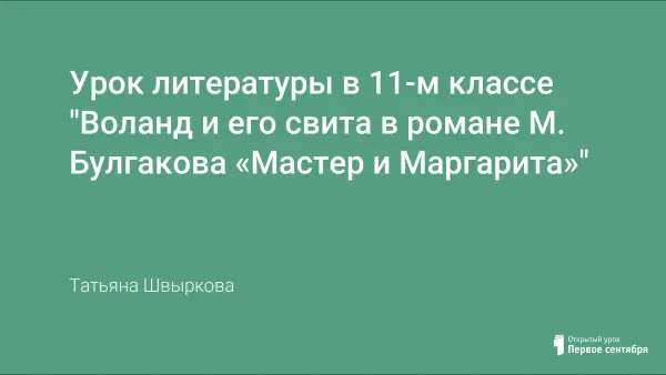 На уроке литературы для учащихся 11-го класса по теме «Воланд и его свита в романе М.Булгакова «Мастер и Маргарита» используются групповые формы работы учащихся, большая дополнительная информация. Учащиеся учатся сравнивать и анализировать информацию, полученную из различных источников, высказывать своё мнение по поставленной проблеме. На уроке показываются видеофрагменты и презентация, выполненная учащимися.