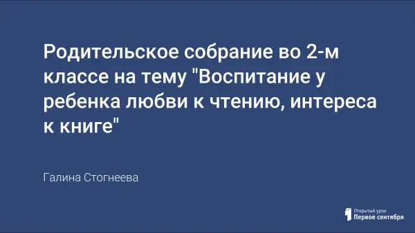 В современном обществе возрастает роль телевизора, компьютера и других технических средств в жизни родителей и их детей. В связи с этим принижается роль чтения в семье. Книга для ребенка является источником знаний, развития, познания мира. Однако важно воспитывать у ребенка с детства любовь к чтению, развивать интерес к книге. Своими наблюдениями и советами учитель делится с родителями на родительском собрании во втором классе.
