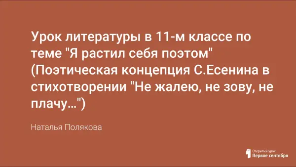 Урок по творчеству С.А. Есенина содержит материал для постижения своеобразия его поэтического мира на примере одного стихотворения. Анализ стихотворения ведётся на трёх уровнях, и исследовательская работа позволяет выполнить всесторонний анализ текста. На уроке использованы компьютер и мультимедийный проектор. Урок сопровождается презентацией PowerPoint, включающей 14 слайдов с портретами, иллюстрациями, теоретическими сведениями.