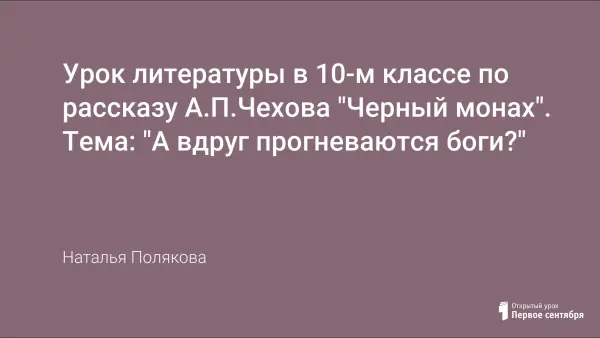 Представлен конспект урока одного из сложнейших в философском плане произведений А.П. Чехова. Цели урока: помочь учащимся постичь философский смысл произведения, создать свою версию прочитанного; дать учащимся знание евангельских сюжетов в литературе и искусстве и обогатить их духовный мир приобщением к осмыслению вечных истин. Выбрана следующая модель урока: работа с текстом – рассуждения учащихся – презентация. Презентация позволяет познакомить учащихся со своеобразием стиля.