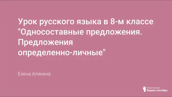 Интегрированный урок русского языка и литературы для учащихся 8-го класса по теме «Односоставные предложения. Предложения определенно-личные». Данный урок проводится с применением ИКТ. Работа с информацией на слайдах позволяет учителю организовать самостоятельную работу учащихся.
