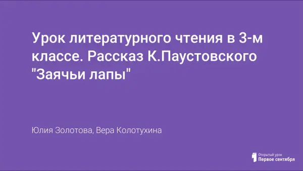 Урок литературного чтения в 3-м классе. Рассказ К.Паустовского "Заячьи лапы"