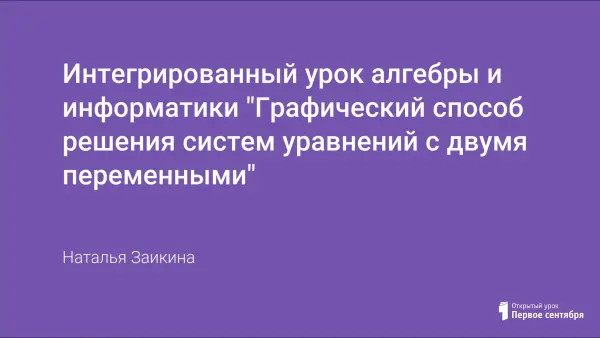 Интегрированный урок алгебры и информатики для 9-го класса по теме «Графический способ решения систем уравнений с двумя переменными». Этот способ решения систем применяется не часто, потому что от существа вопроса отвлекают технические проблемы, а именно: много времени уходит на вспомогательную работу – построение графиков уравнений системы. Применение информационных технологий позволяет избежать этих трудностей, создает ситуацию успеха, способствует развитию творческих способностей и самостоятельности.