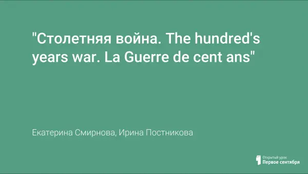Проект был предложен учащимся 8-го класса. В конфликт Столетней войны в основном были вовлечены Англия и Франция. В связи с этим мы обратились к франкоязычным и англоязычным источникам и рассмотрели конфликт с двух точек зрения, что вызвало огромный интерес у учащихся и позволило повысить мотивацию к изучению английского и французского языков.